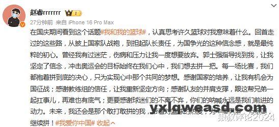 北京时间10月2日,国庆假期期间,中国男篮队长赵睿提到了我和我的篮球的话题做出更多的点评。
