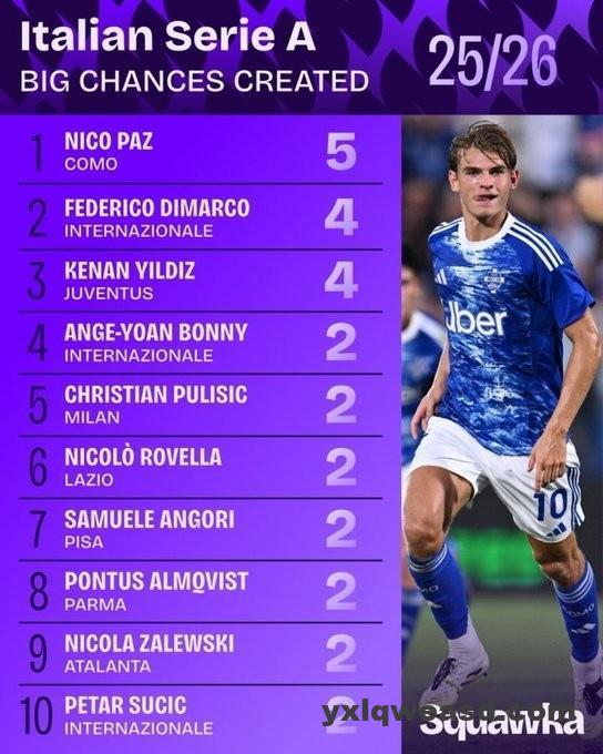 直播吧9月26日讯 知名足球数据网站Squawka统计了2025/26赛季意甲联赛截至目前的球员创造重大机会榜 […]