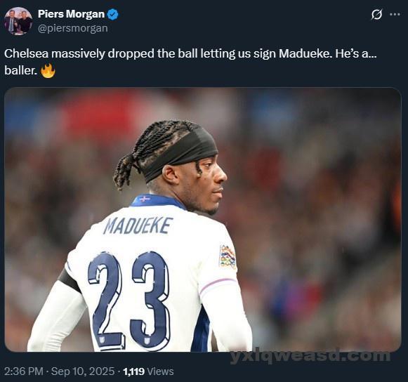 直播吧9月10日讯 英国名嘴、阿森纳拥趸皮尔斯-摩根在推特晒照,称赞马杜埃凯。 今天,英格兰5-0大胜塞尔维亚 […]