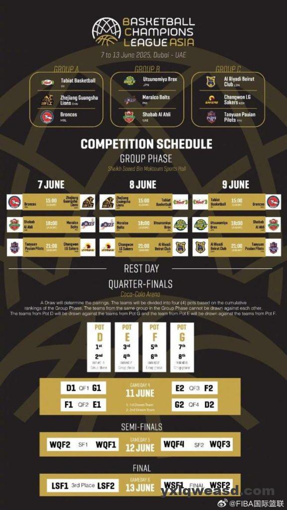 直播吧6月1日讯 2025FIBA亚洲篮球冠军联赛详细赛程出炉,浙江广厦将在北京时间6月7日与8日19点出战小 […]