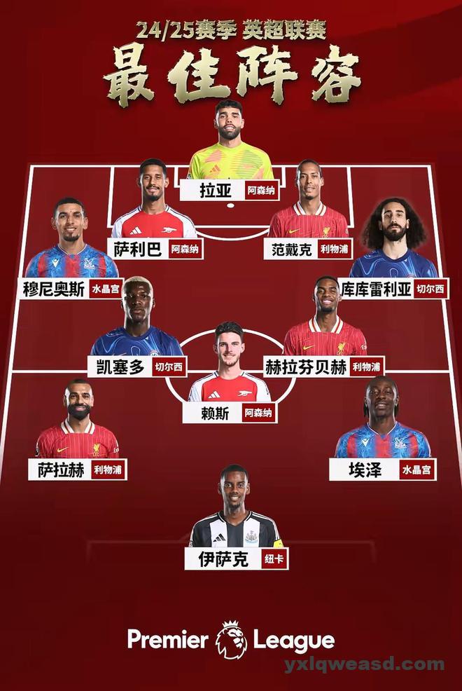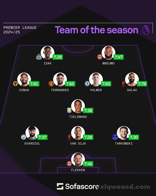 近日,知名足球数据网站Sofascore公布了其评选的24/25赛季英超最佳阵容。伊萨克、萨拉赫、帕尔默等一众攻击手领衔,英超亚军阿森纳无人入选。