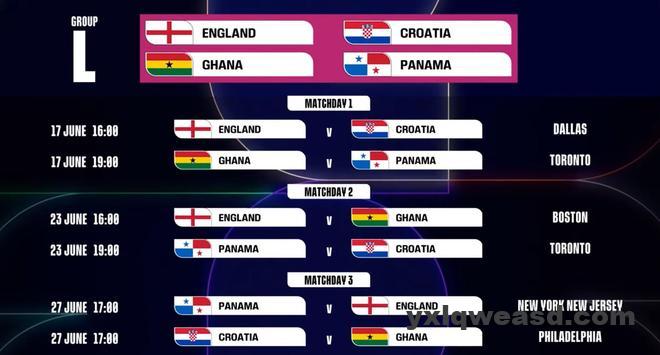 北京时间12月7日凌晨,世界杯小组赛赛程公布,L组方面,英格兰首战对阵克罗地亚将在北京时间6月18日6时进行。