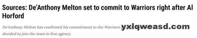 在霍福德正式承诺加盟勇士的消息传出后不久,联盟消息人士透露,自由球员梅尔顿也已确定将加盟勇士队。
