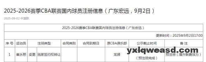 除此之外,按照CBA联盟规定,崔永熙返回CBA联赛后已经年满22岁,他需要与新东家重新签署B类合同,双方已在昨天(9月16日)完成签约。目前崔永熙的具体签约细节尚未公布,具体年限需要等待进一步的消息,而广东男篮此前已经为崔永熙完成预注册。