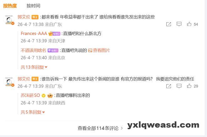 郭艾伦还在评论区进一步回复表示:“都来看看,年收益率都干出来了,谁给我看看,谁先发出来的这些。”