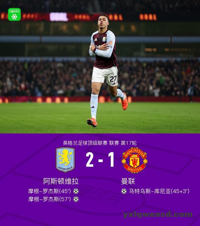 第57分钟,又是他!摩根-罗杰斯兜射完成双响,维拉2-1再度领先曼联!