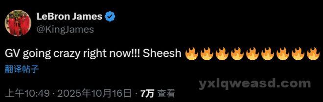 文森特此役出战25分26秒,疯狂命中6记三分得到22分3助攻,尤其是首节不到7分钟狂轰5记三分得到18分,也是让詹姆斯通过社媒夸赞“文森特要疯了”。