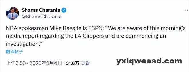 北京时间9月4日,据ESPN名记Shams报道,NBA发言人迈克-巴斯向其表示,联盟“已知晓有关洛杉矶快船队的媒体报道,并已启动调查”。据此前报道,快船队及其老板鲍尔默被指控通过向莱昂纳德支付2800万美元“挂名工作”报酬,以此规避NBA的工资帽规定。