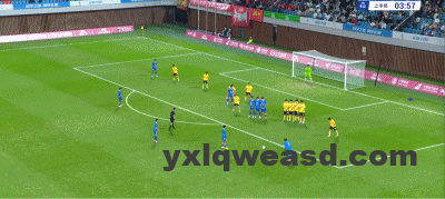第5分钟,钟文任意球射门,皮球击中人墙后偏出。