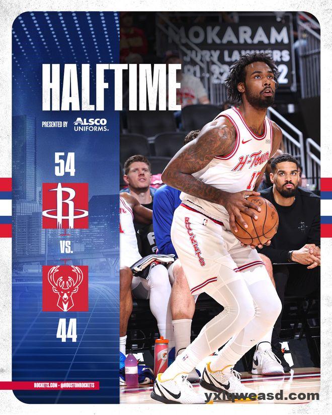 火箭队的谢泼德上半场得到15分,汤普森得到8分和8个篮板;雄鹿队的吉昂得到16分、6个篮板和5次助攻,南斯得到12分。