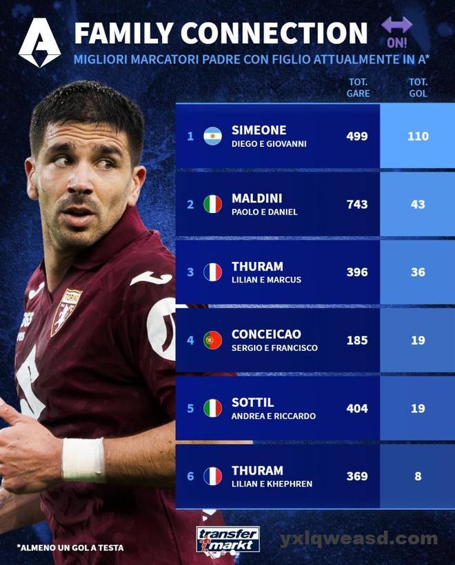 意甲历史父子进球榜TOP10: