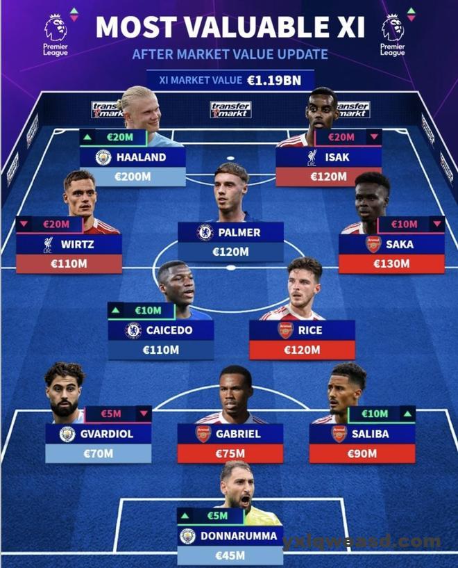 最近德国转会市场联合英超官方公布了一套“英超身价最高最佳阵容”,哈兰德、萨卡、赖斯等球员都在其中。相比之下,罗德里、厄德高、阿利森这些呼声很高的名字却无缘入选,也难免让人议论。数据截至撰文时间(北京时间2025年12月10日),这套身价豪华阵容到底能踢成什么水平,就看各个位置的配置和球员近期状态了。