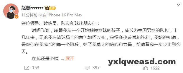 如今赵睿通过社媒再度发布长文,正式回顾十几年的篮球生涯,也是感谢一路对于他给予帮助的教练、领导、队友和球迷朋友们。
