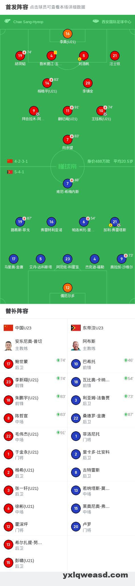第41分钟,汪士钦定位球传中,拜合拉木后点推射得手,中国U23取得1-0领先