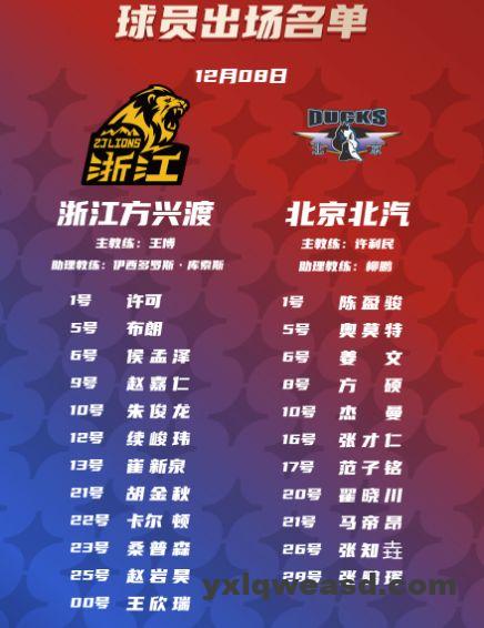 广厦已经提前锁定CBA俱乐部杯八强,他们本场轮休后场核心孙铭徽,外加塔克、吴骁与林秉圣也缺席。